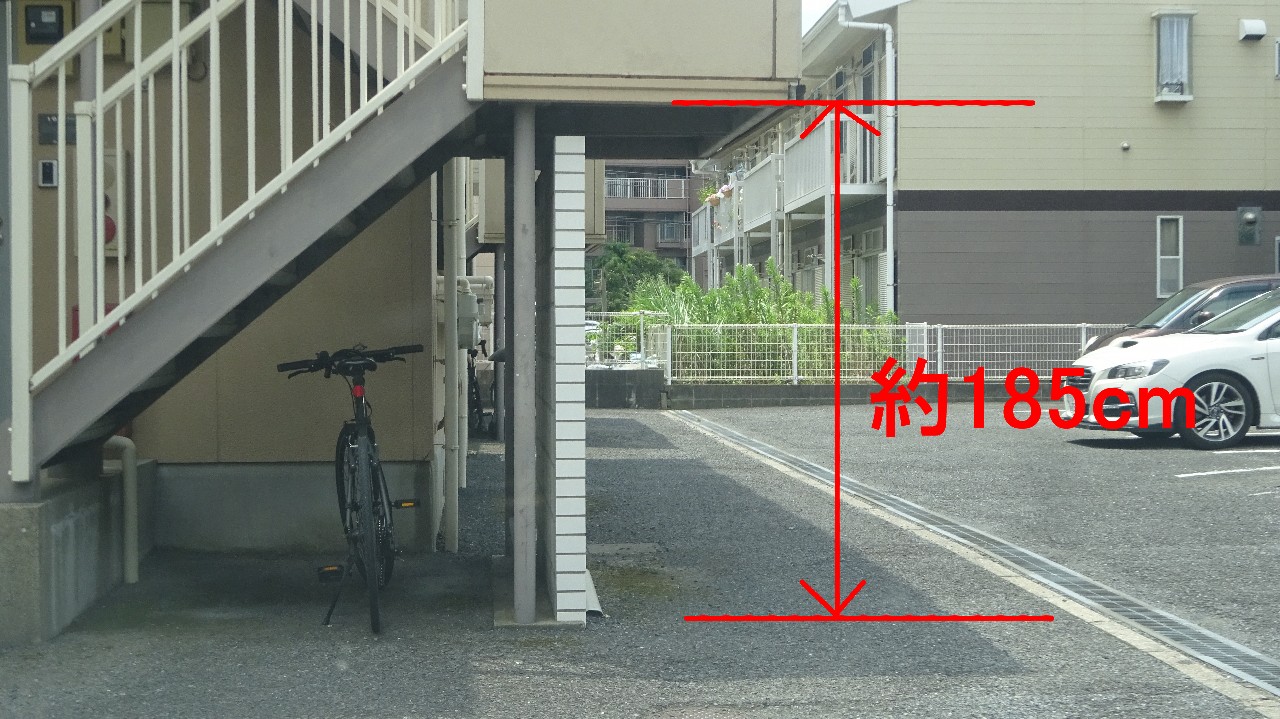 うちの駐車場の前のこの階段の踊り場の下、高さが185cm程度なのですねー。