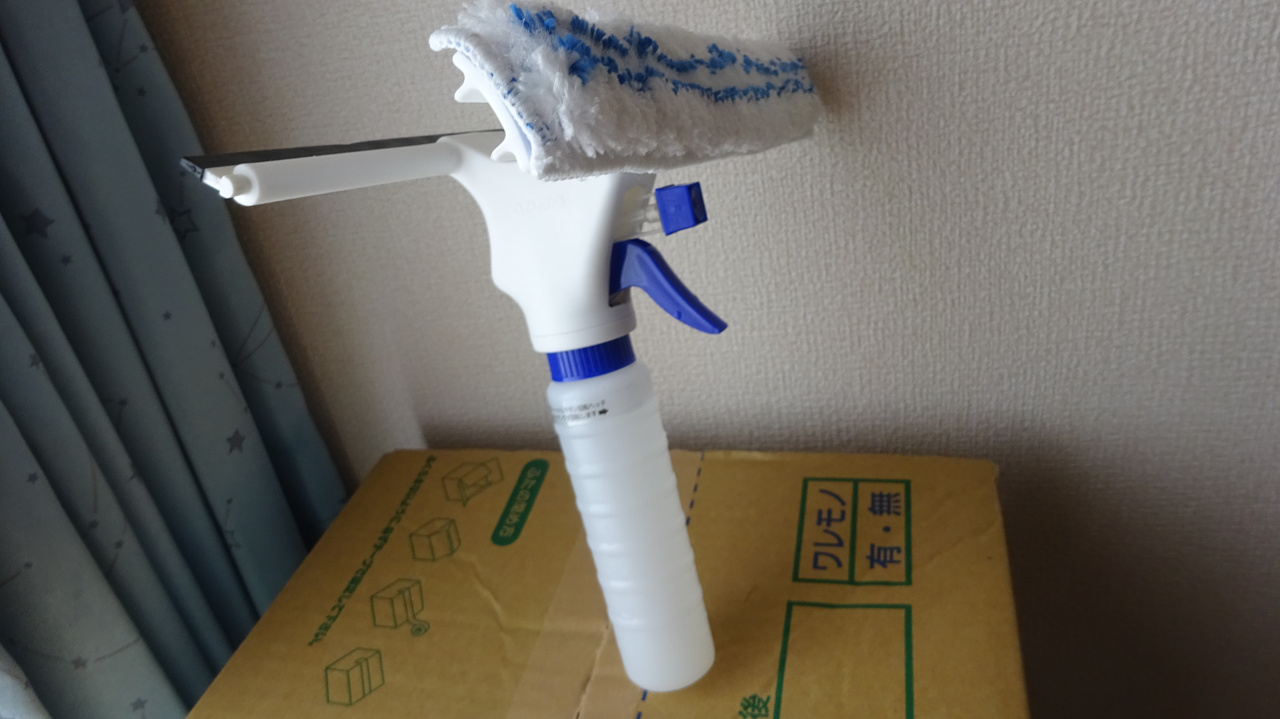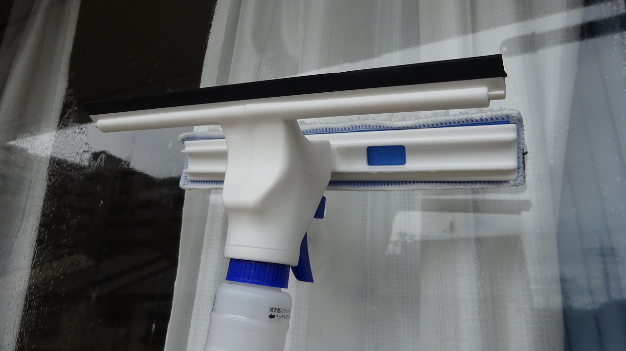スプレーで水を吹き付けて、モップで掃除して、スクイージーでふき取る。