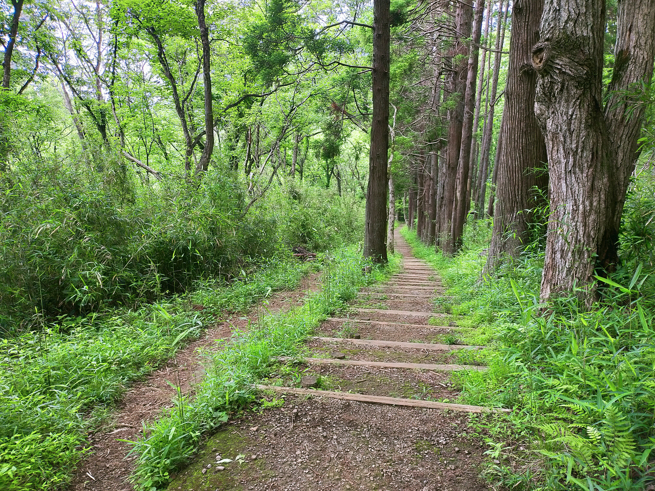 この辺はうっそうとしていて、山道と言っても通用する感じ。