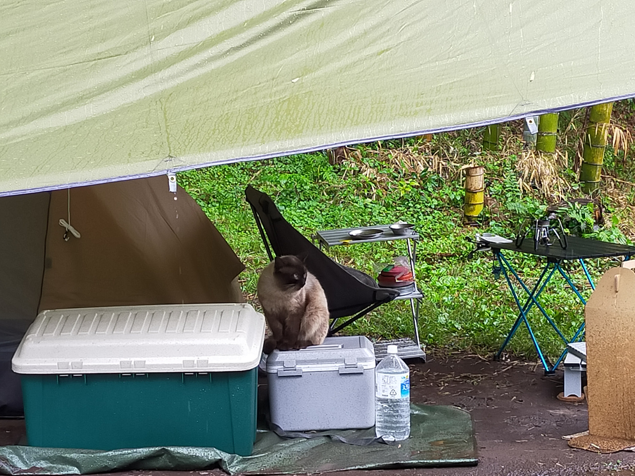 最初からタープの下に全部入れ込む雨シフト。