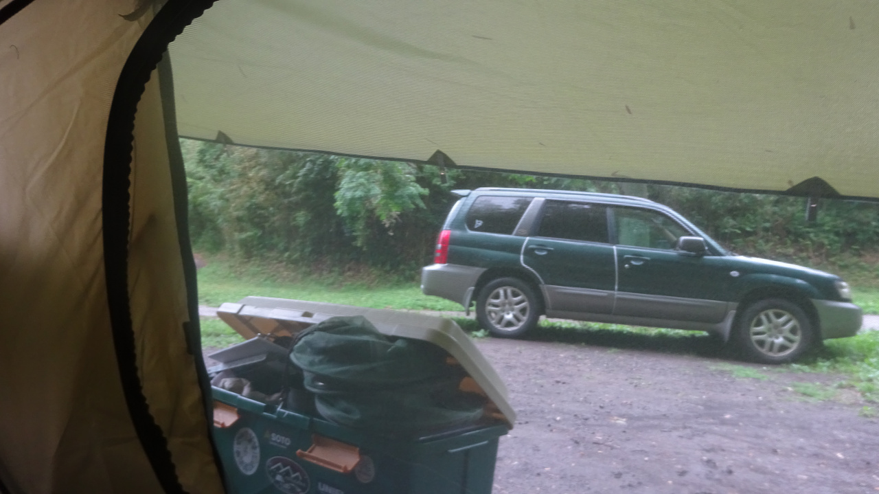 今回は雨が降るのが分かってたけど、やっぱりキャンプしたかったので。