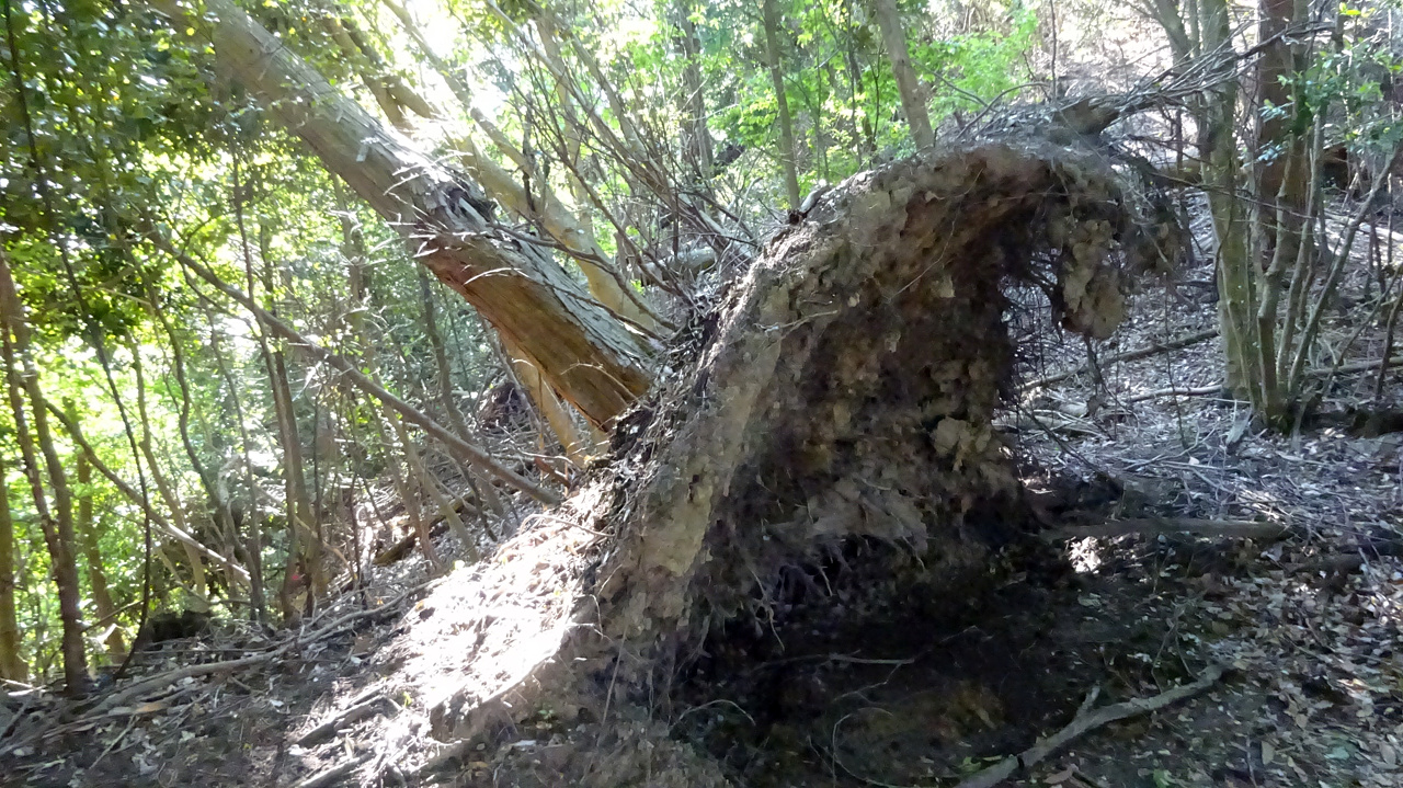 根っこから横倒しになってる木もたくさん。