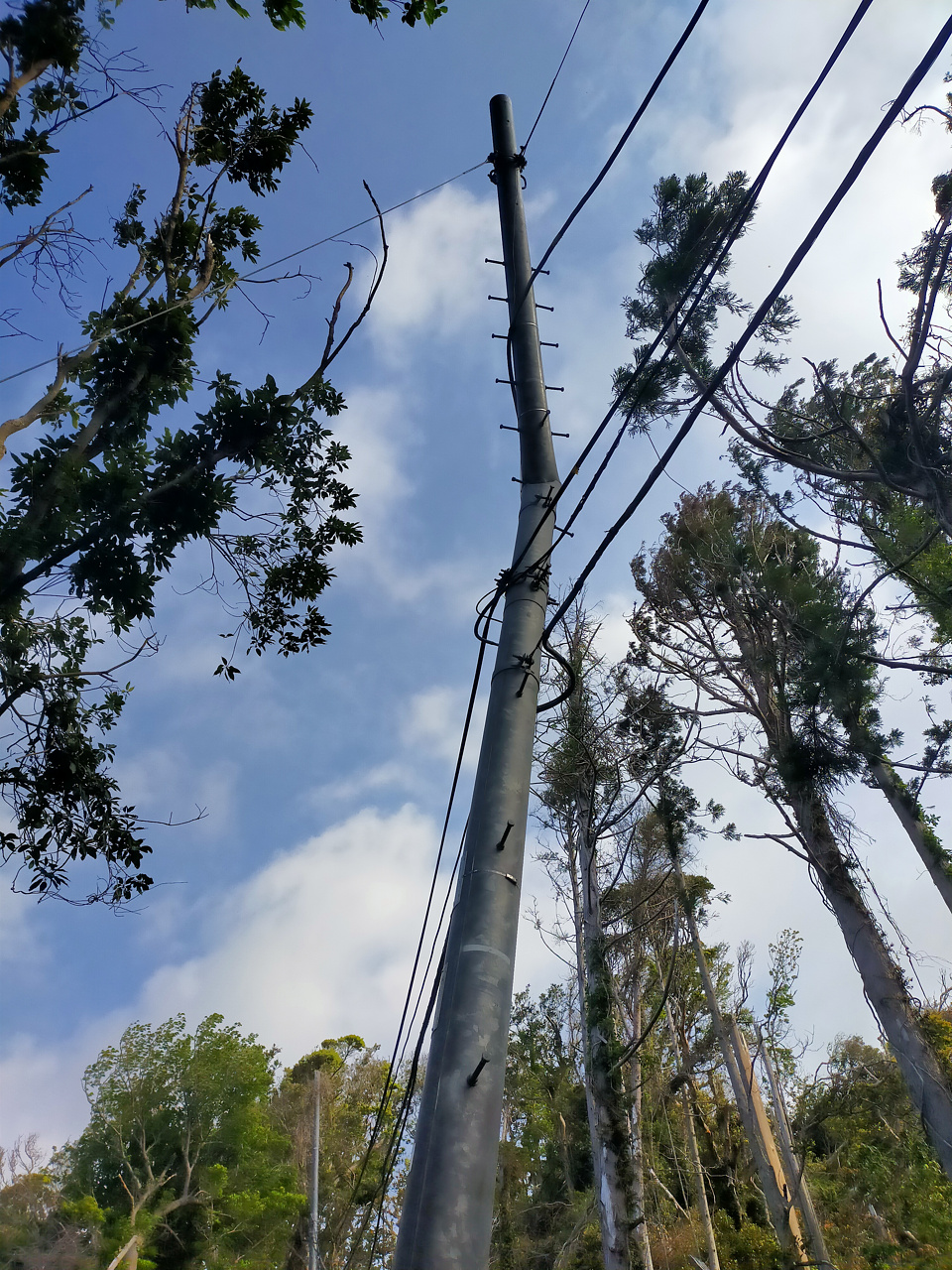 電柱が折れ曲がってる((((;゜Д゜)))