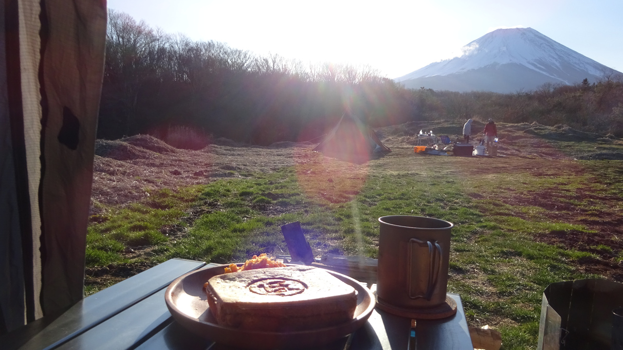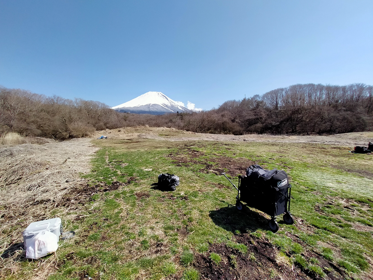 富士山がよく見える場所に設営開始!