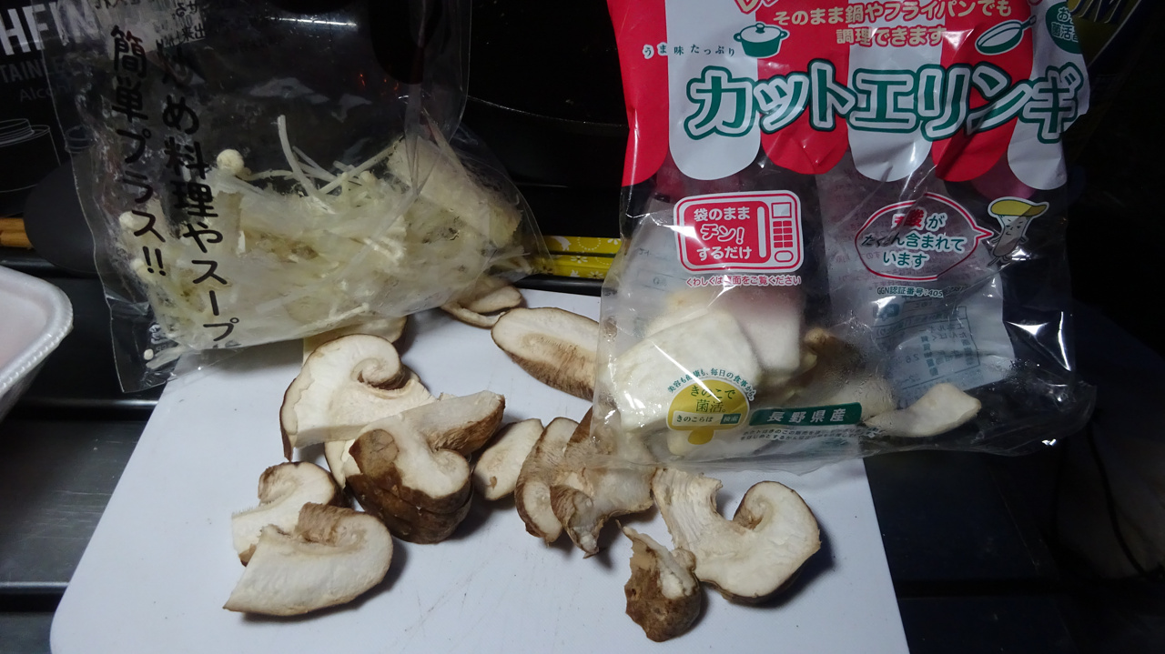 アヒージョの余りのキノコ軍団も入れてみます。