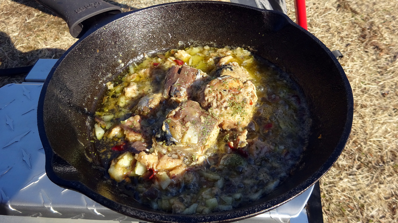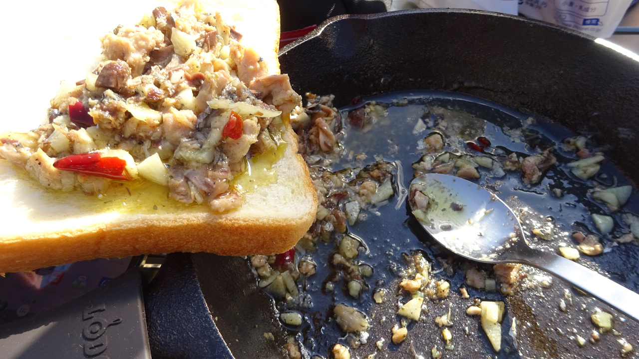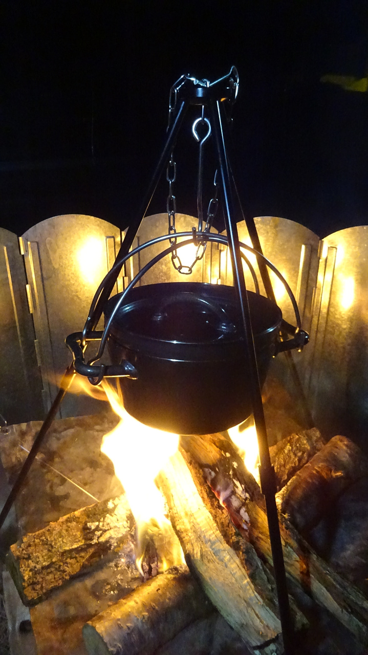 ダッチオーブンをトライポッドに吊るして焚き火で温める・・・というのをやろうとしてすぐ断念しました(´Д`;)