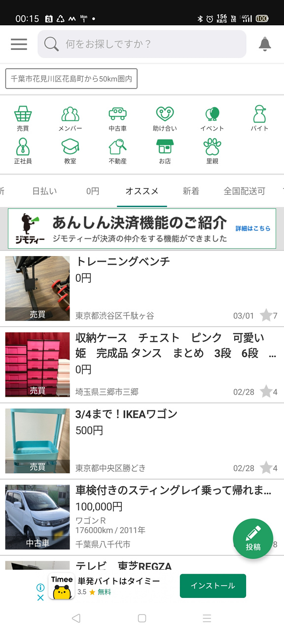 ジモティーというアプリもチェックしてました。