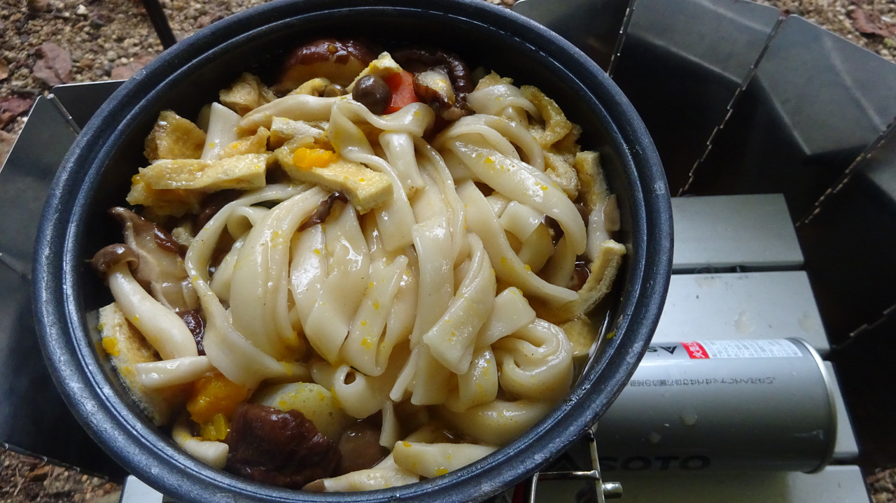 さらに麺を粉が付いたまま投入。これはゆるキャン△知識。