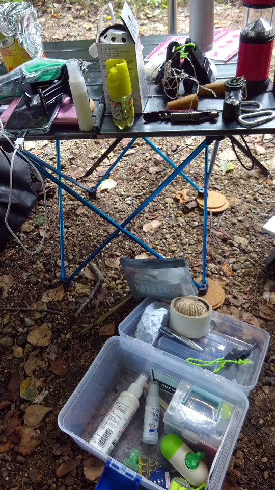タープの下に籠って、キャンプ道具の整理などしてみました。