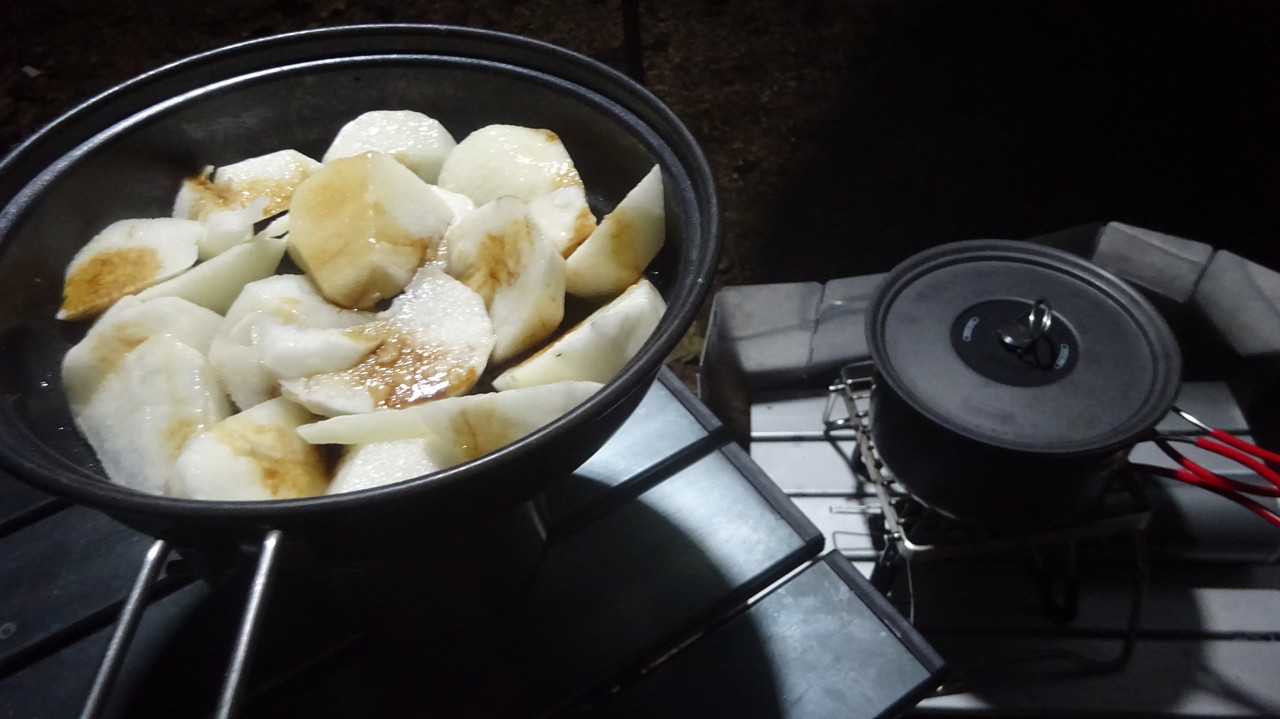 本には醤油&みりんと書いてあったけど、さすがにみりんなんかキャンプに持って行けません。