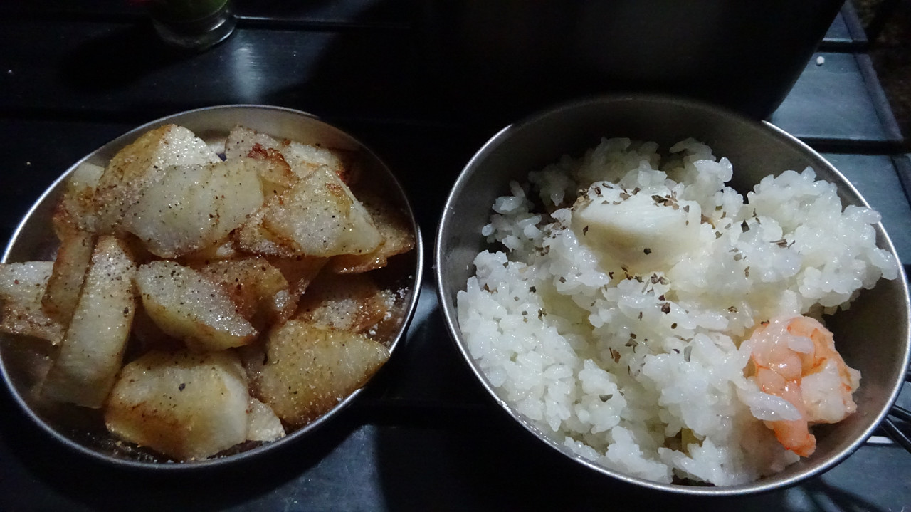 焚き火をおこしつつ、こんなものを食べてみます。