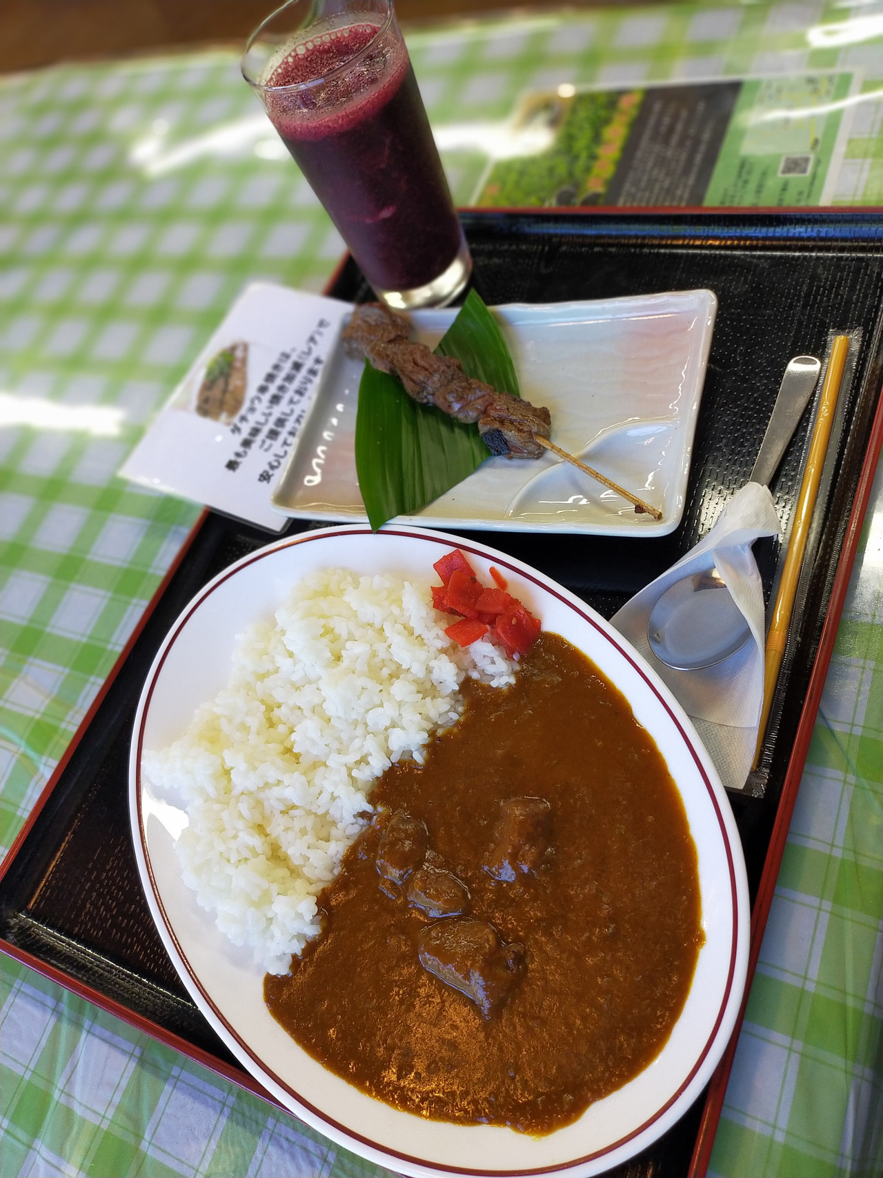 ダチョウカレーとダチョウの焼き串、ついでにブルーベリージュース。
