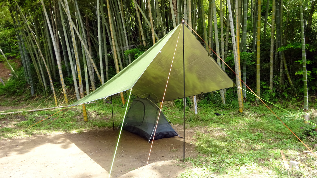インナーテントだけにしておく予定でしたが、嫌な予感がしたのでやっぱりフライシートを被せました。