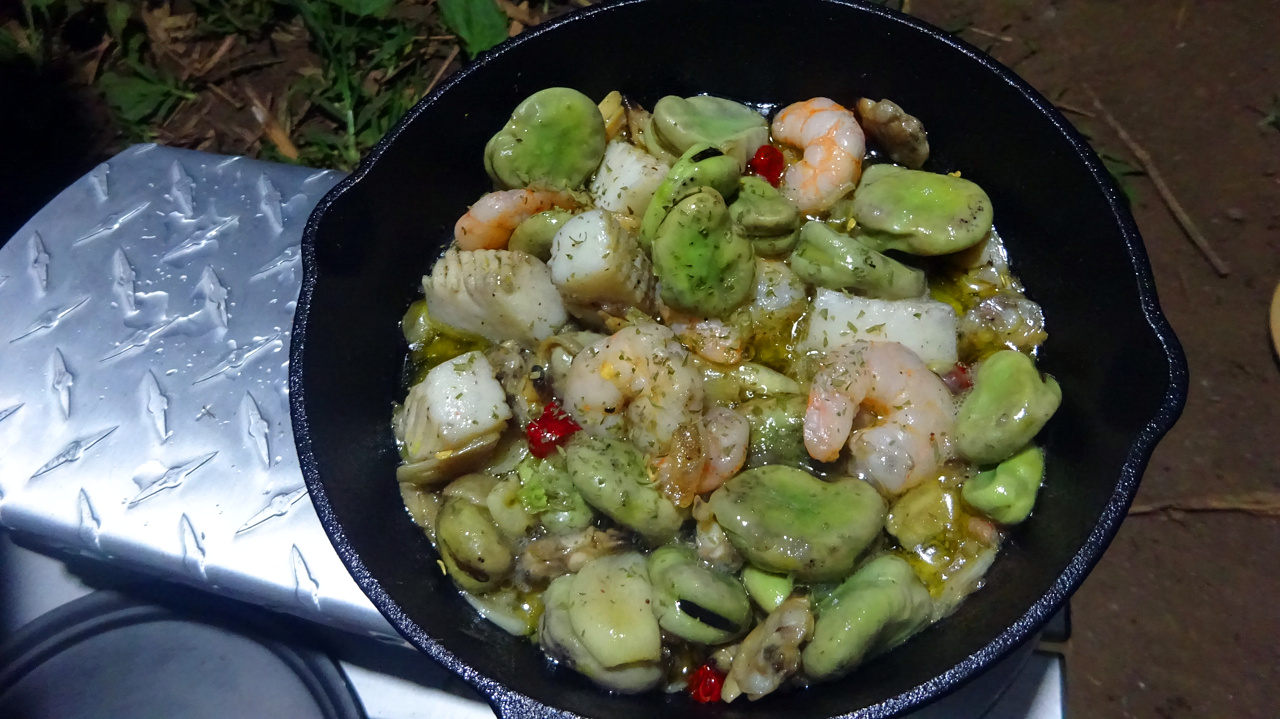 シーフードと、ついでにそら豆を投入。