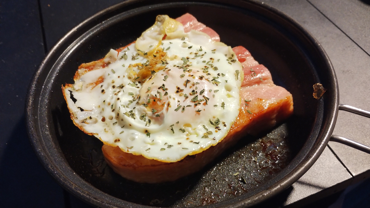 綺麗な形のお肉が無かったので、厚切りベーコンで代用。