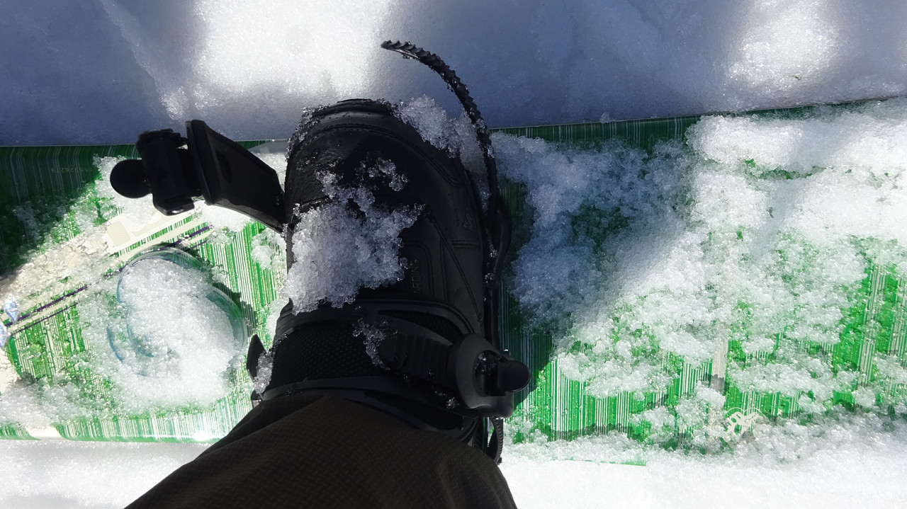 ボードの右足のビンディングの、つま先側がすぐ外れるようになっちゃってました。