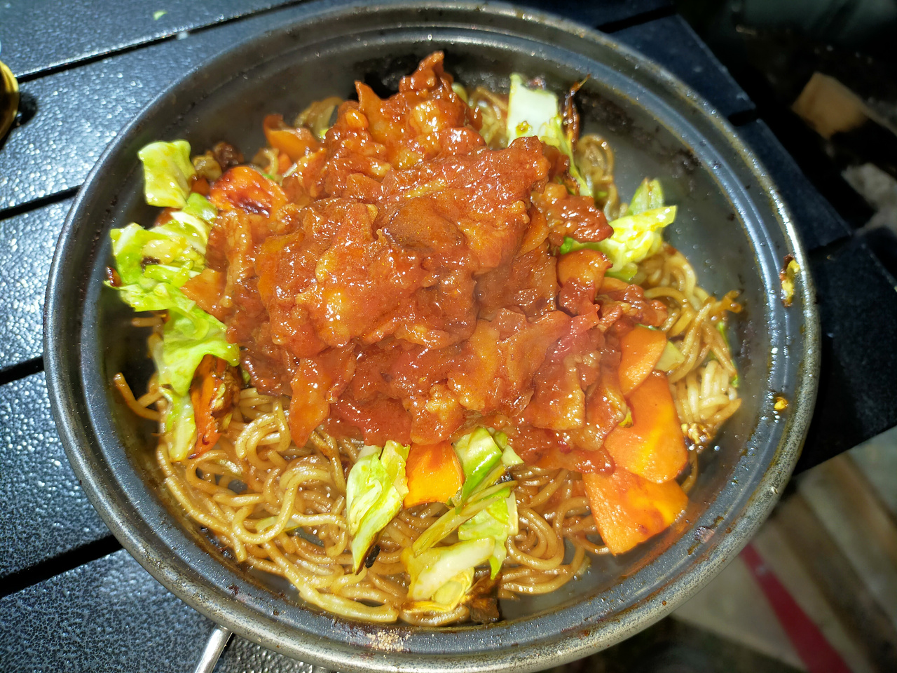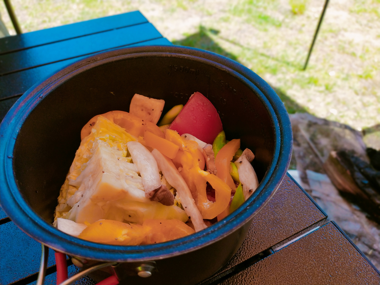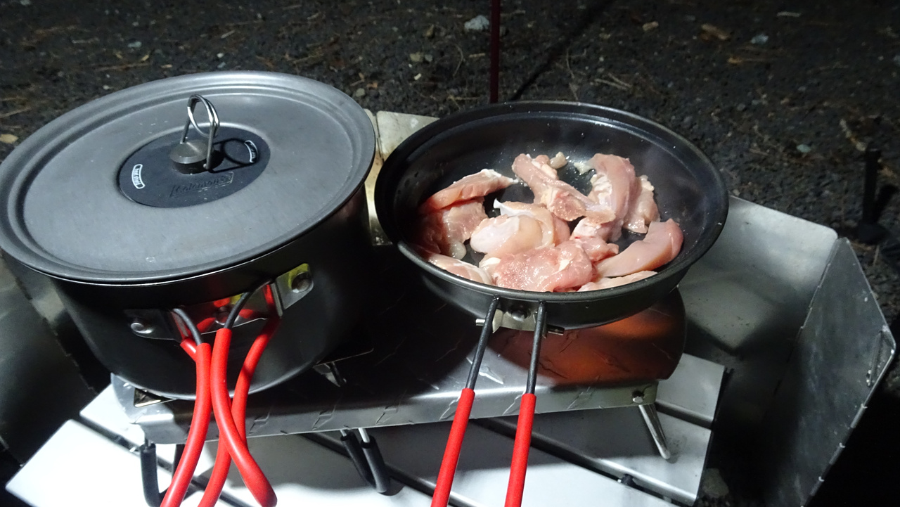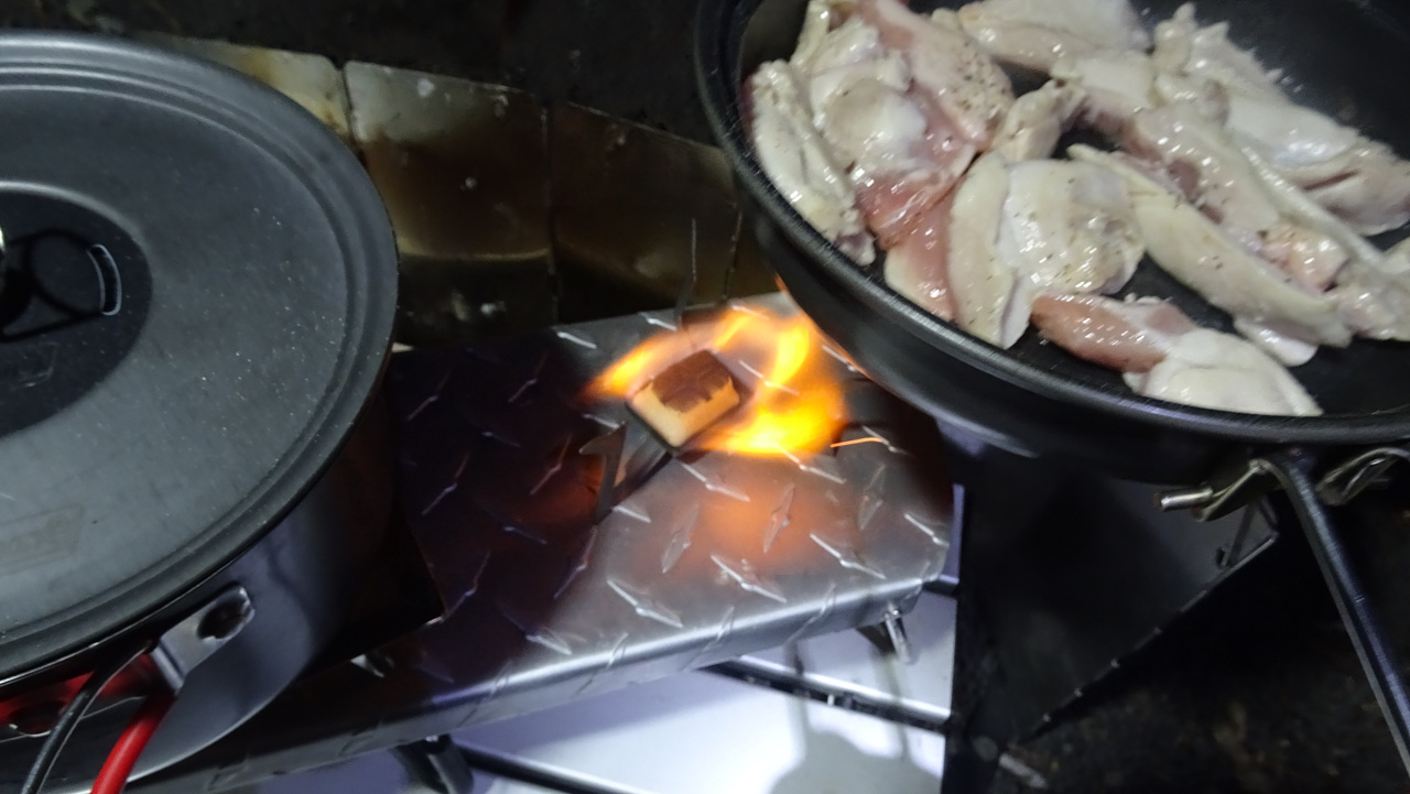 カセットコンロはお米に使ってるので、別の火力が必要。