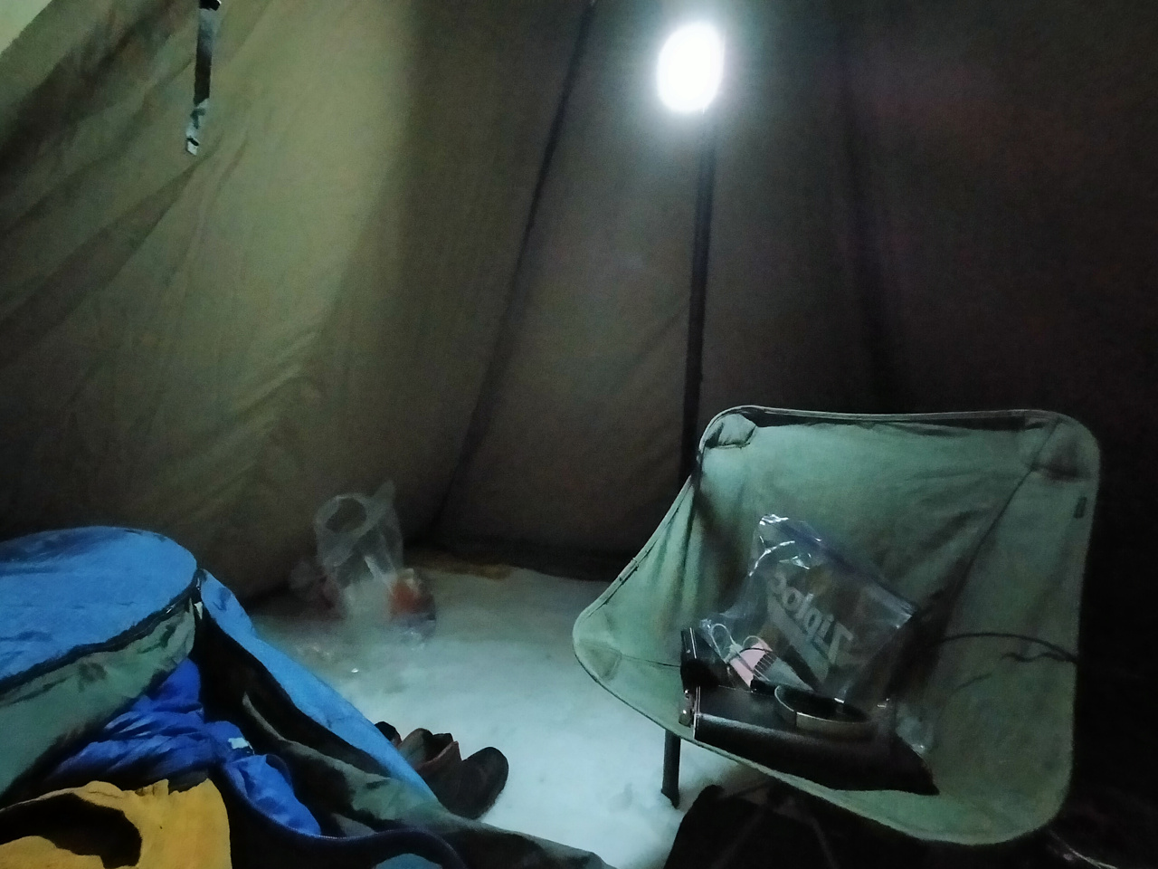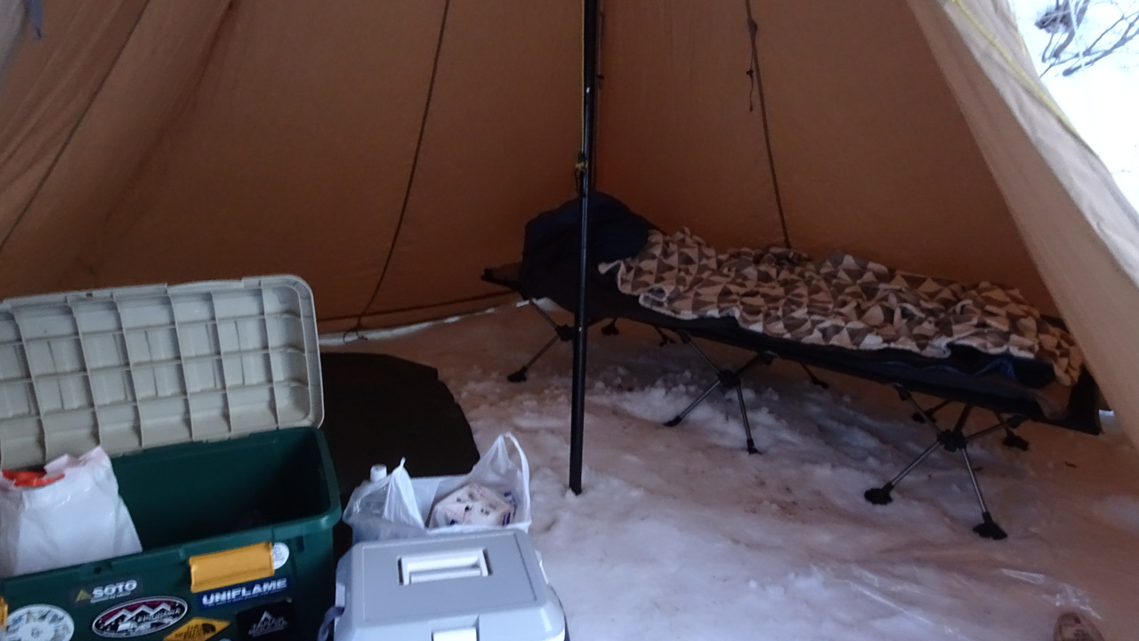 テントの中の地面が雪!