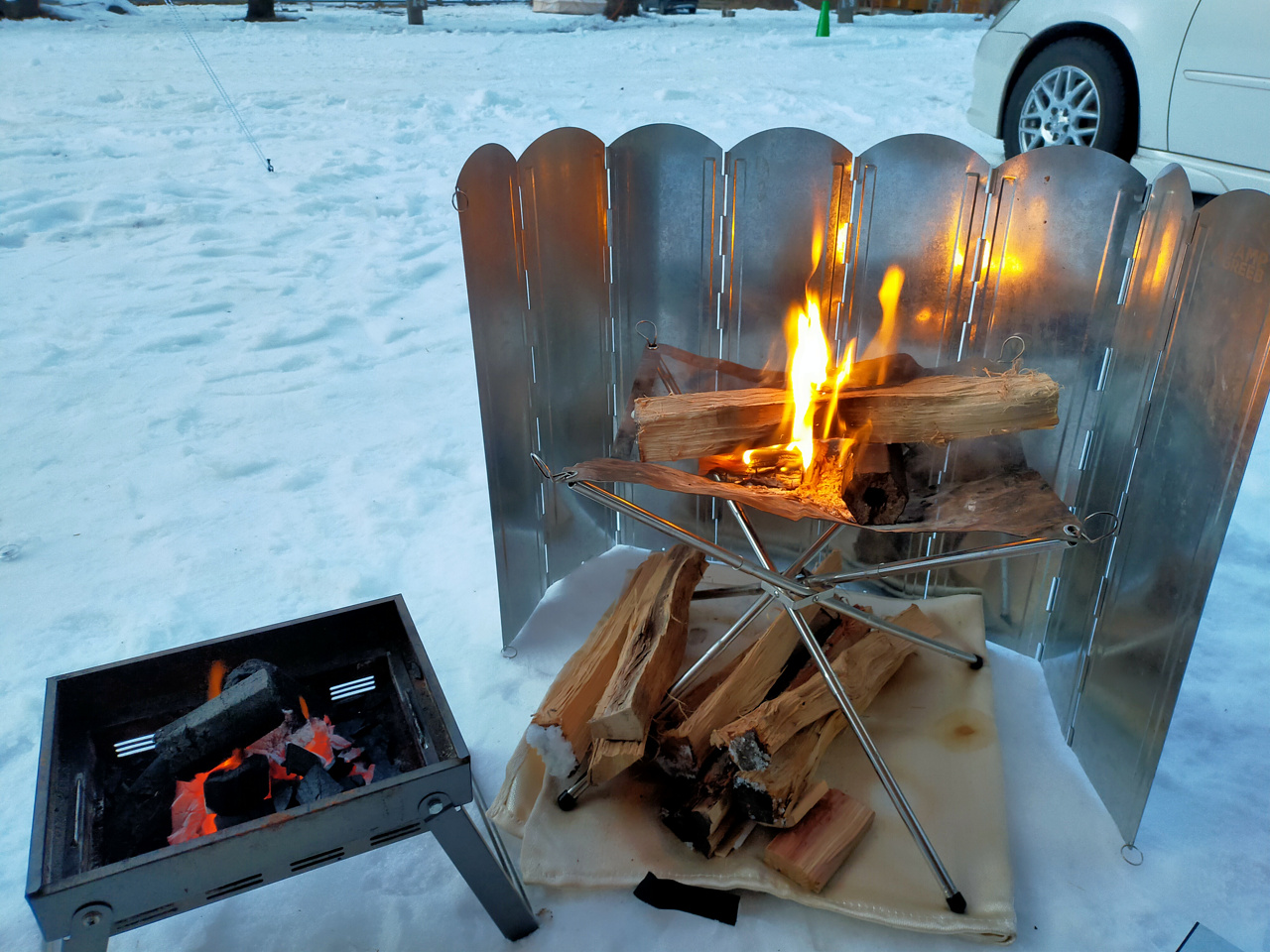 自分はテントの中に引きこもらず大体はタープの下にいるので、あんまり薪ストーブの恩恵は受けられないんじゃないかと。