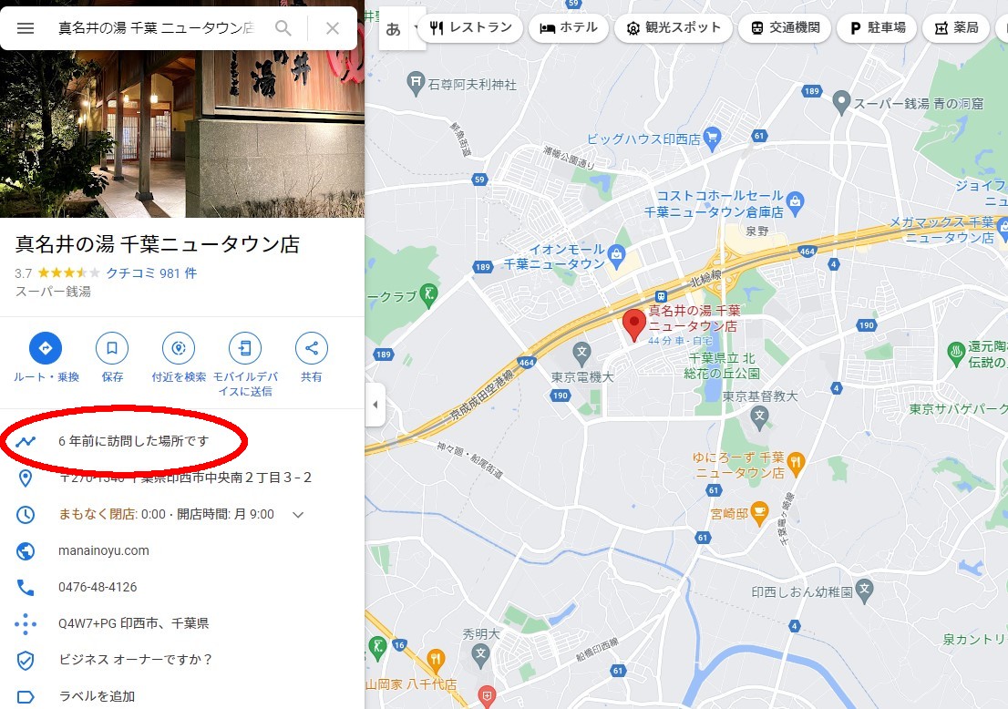 最近のGoogleマップはタイムラインを有効にしてれば以前いつ来たかが分かるようになってます。