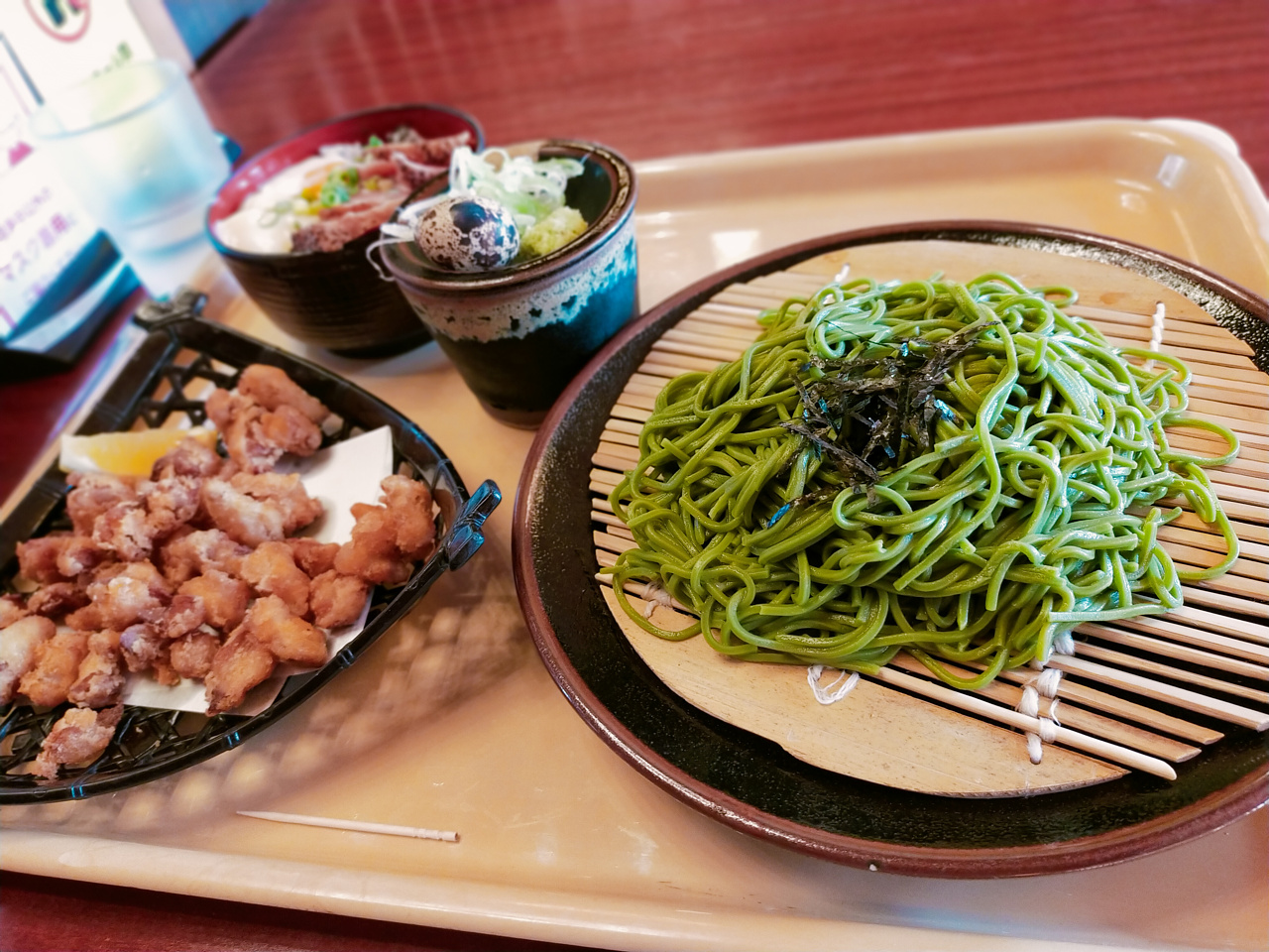 お風呂上りに茶そばを頂きました。