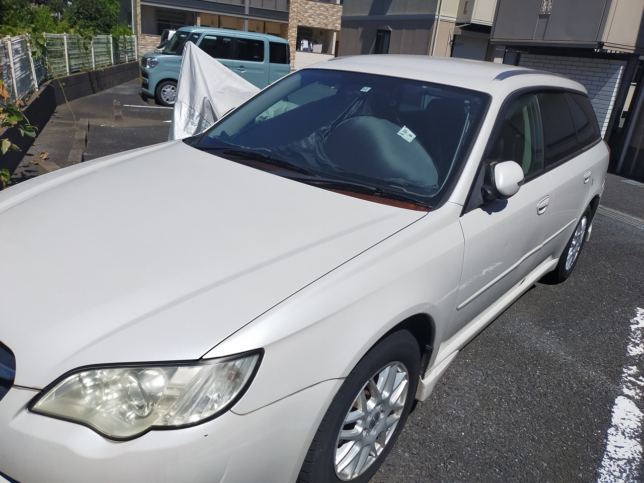 フロントガラスを覆ってるサンシェードもダレてくるほどの暑さ。