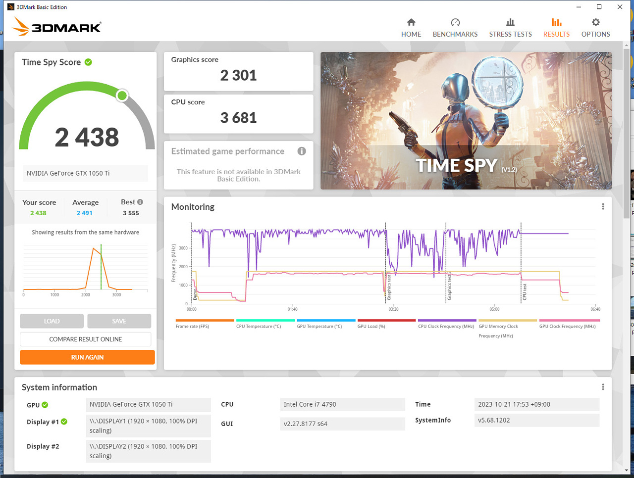 Steamで3DMark DEMOという無料ベンチマークをDL。