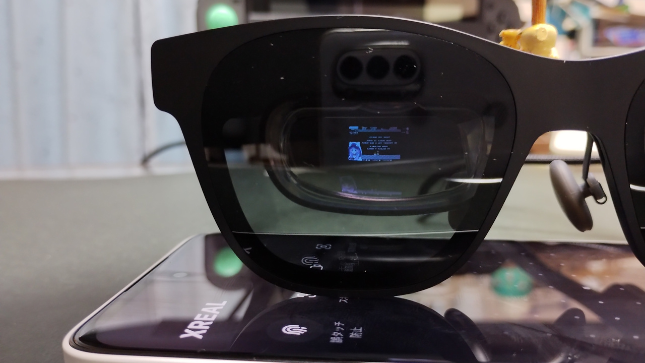 眼鏡部分の裏についてるパーツ部分に映像が映ります。